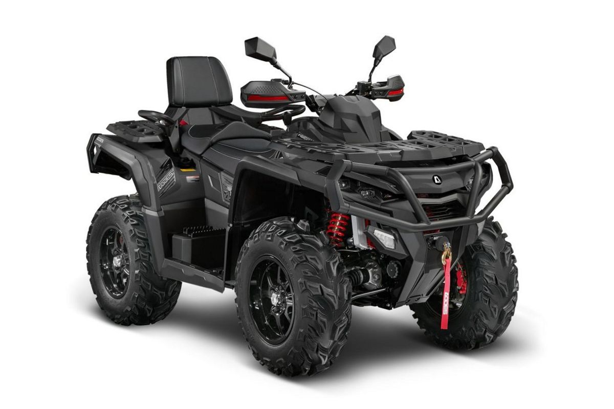 От других моделей линейки отличается 28-дюймовыми шинами с большими грунтозацепами — они дают высокую проходимость по грязи, лужам и глубокой колее. Шины оснащены бедлоками — с ними колеса не разбортируются при резком повороте на скорости. Еще у квадроцикла есть вынос радиатора и шноркель, они защищают двигатель от перегрева и гидроудара при прохождении ручьев и рек.